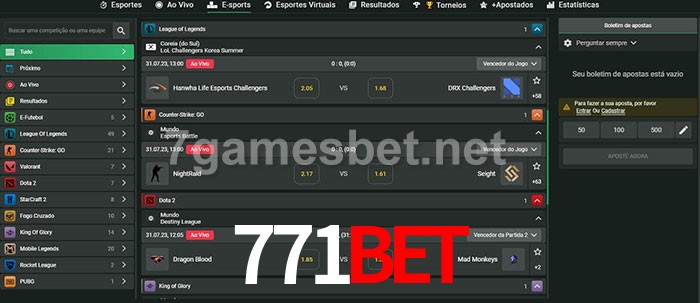 O 771Bet oferece uma grande seleção de opções de apostas em e-sports com probabilidades competitivas